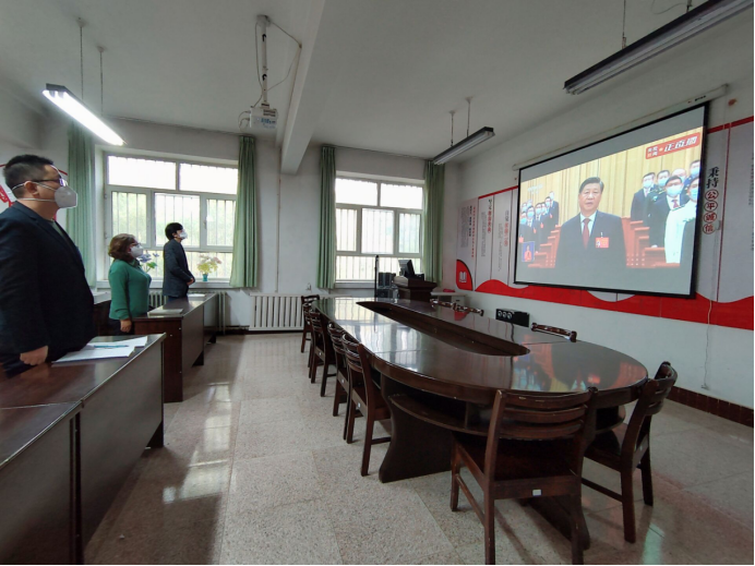 全体师生通过手机、电视、电脑、多媒体等方式收看大会盛况。