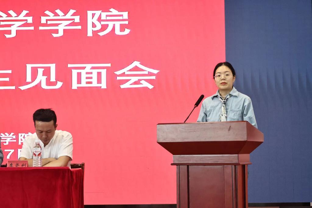 学生代表学生会执行主席张董董同学分享了自己的学习经验和成长经历。强调了合理规划时间的重要性。他建议新生们制定明确的学习计划,充分利用大学的丰富资源,积极参加学术讲座和实践活动,拓宽自己的视野。