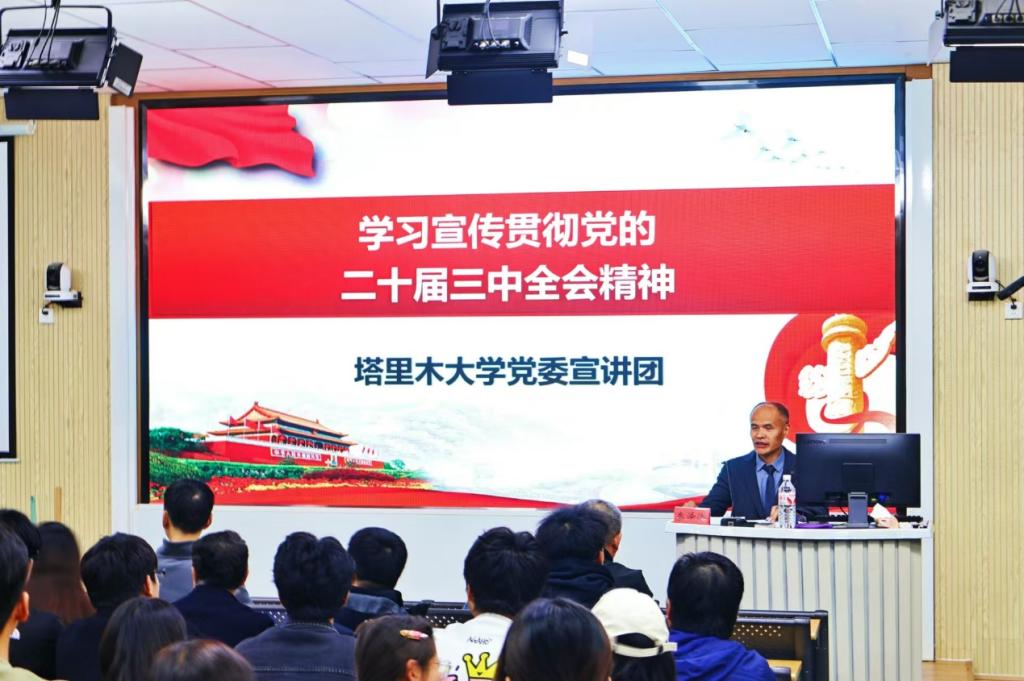 师生作宣讲报告。宣讲会上秦泽洪着重讲解《中共中央关于进一步全面深化改革、推进中国式现代化的决议》精神、习近平总书记在会议上的讲话精神以及中国共产党的相关决策部署。