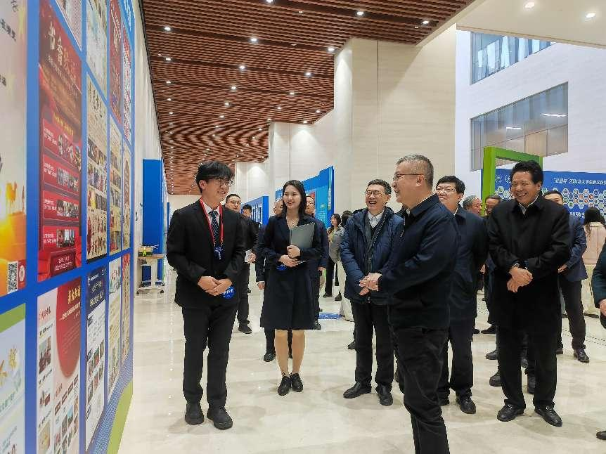 《云博物——虚拟现实交互博物馆的探索者》获金奖、同时作为十大推荐品牌项目进行路演,项目负责人李方正向山东大学党委书记任友群,教育部新文科建设工作组组长、全国新文科教育研究中心主任、山东大学原校长樊丽明,山东省委教育工委委员王浩,济南市副市长任广锋等一行领导进行了汇报。