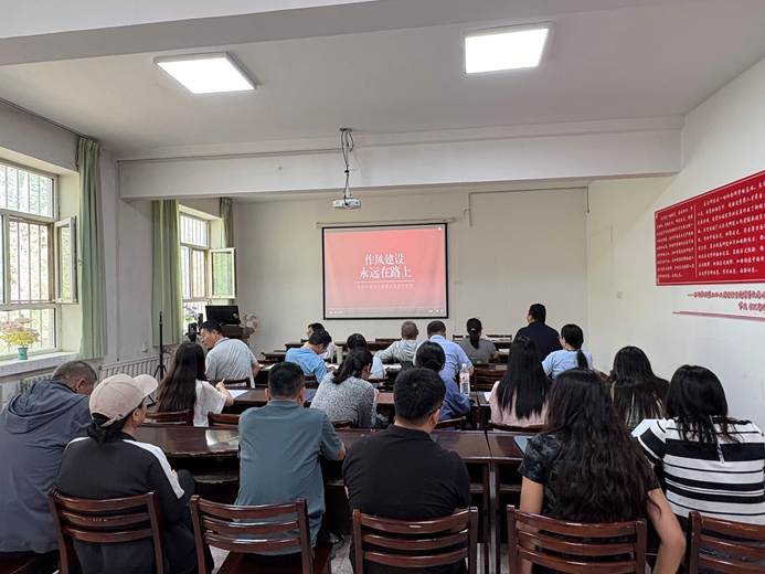 活动当日,学院党委书记姚江军主持召开中央八项规定精神警示教育会。会议深入剖析了违反中央八项规定的典型案例,并结合学院实际情况,重点警示学术诚信、科研经费使用、师生交往等领域存在的风险隐患。学院全体教职工在会上郑重承诺,将以胡杨精神为引领,扎根边疆,以清风正气牢守初心,为教育事业贡献力量。