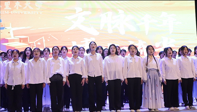第六届昆仑山高文艺晚会暨文脉千年博物流光毕业晚会在大学生活动中心举行。学院领导、教师代表、全体毕业生及部分在校学生欢聚一堂,以文艺为媒,共酥文明长河,为青春征程献上真挚祝福。
