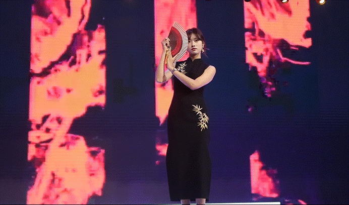 舞蹈《雪龙吟》以红扇为引,舞者如雪中游龙,刚柔并济;诠释中华儿女的壮志豪情。歌曲《借我》以歌声倾诉对青春与理想的眷恋,一句“借我纵马天涯的孤勇”引发共鸣。模特走秀《斑斓旧时光》穿越千年,学子身着历代复原服饰,手持油纸伞、竹笛、团扇,步履间尽展“衣冠载史”的文化自信。