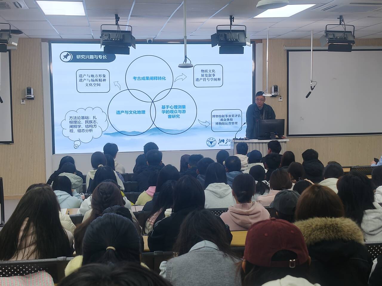 2025年10月26日,浙江大学艺术与考古学院冯一鸣博士于阶教12带来“中华文明探源视阈下的文物叙事”学术讲座。学院教师、文博专业研究生及2025级全体新生共同参与。讲座由历史系主任孙长龙主持。
