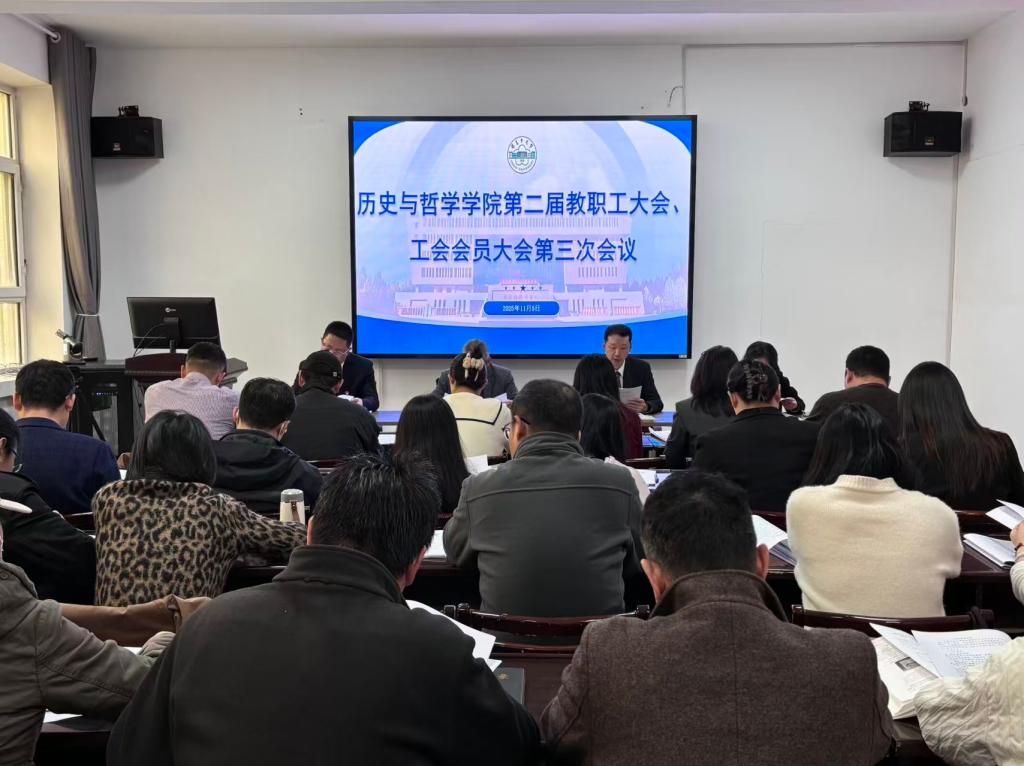 第二届“教职工代表大会暨工会会员代表大会”第三次会议在史哲楼204会议室召开。学院党委书记姚江军、院长吴昕炜、党委副书记常玉柱、副院长秀梅及全体教职工出席会议。会议由院长吴昕炜主持。