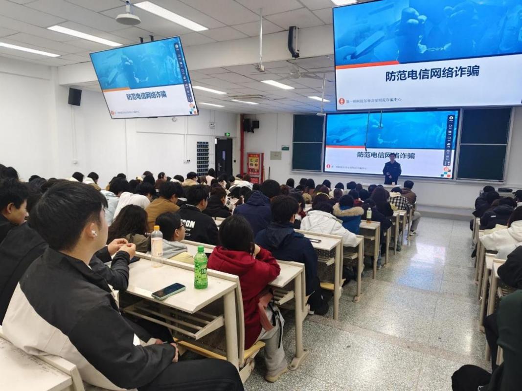 活动开始,大学路派出所民警结合近期高发的网络诈骗案例,深入浅出地讲解了常见诈骗手段、识别技巧及防范措施,提醒同学们在日常生活中保持警惕,不轻信、不透露、不转账,筑牢思想防线。讲座内容贴近实际,案例鲜活,赢得了现场师生的广泛好评。
