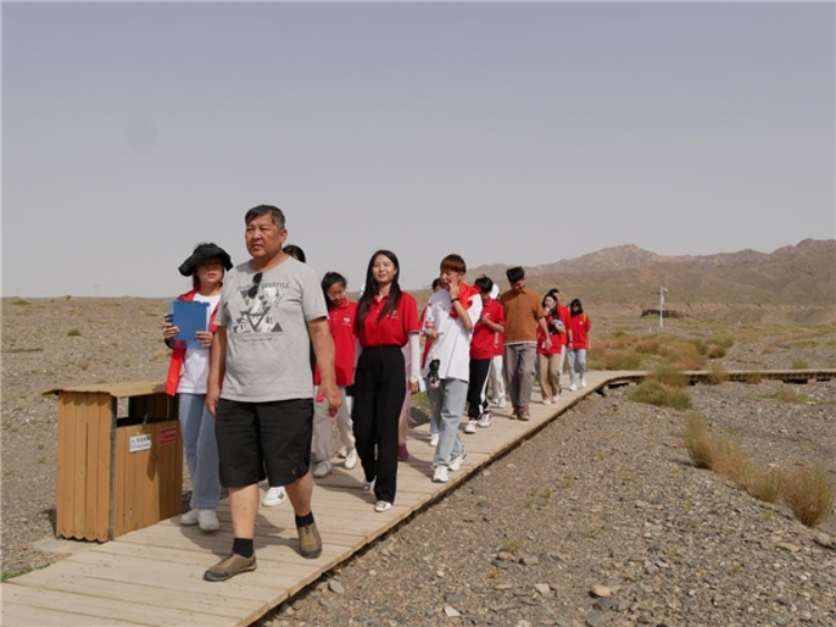 在参观过程中,指导老师贾东向团队成员详细介绍了苏巴什佛寺遗址为我们研究早期佛教的传播轨迹提供了珍贵的佐证。