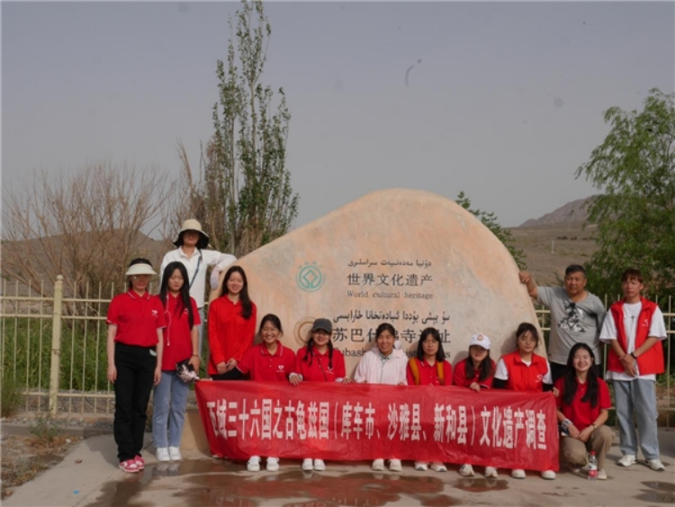 图为团队成员参观苏巴什佛寺遗址合影留念。中国青年网通讯员 王溪域 摄