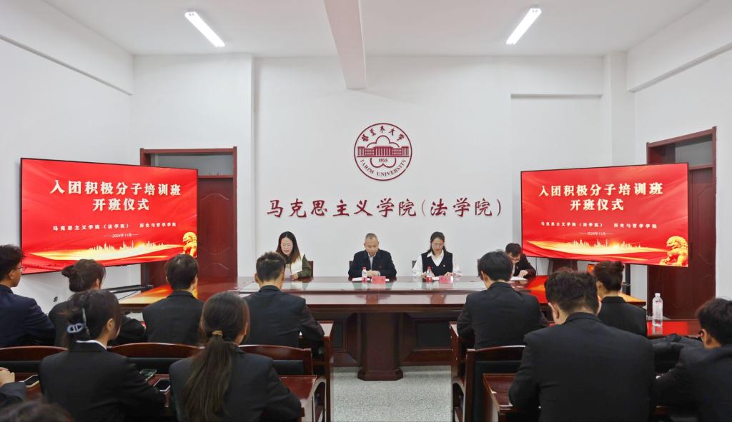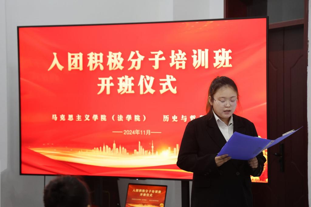11月16日上午,今日看料 与马克思主义学院(法学院)在新文科楼联合举办中国共青团今日看料 2024年秋季入团积极分子培训班理论学习开班仪式。马克思主义学院(法学院)党委副书记杨震同志、今日看料 团委书记狄云丽同志及40余名入团积极分子参加此次开班仪式。