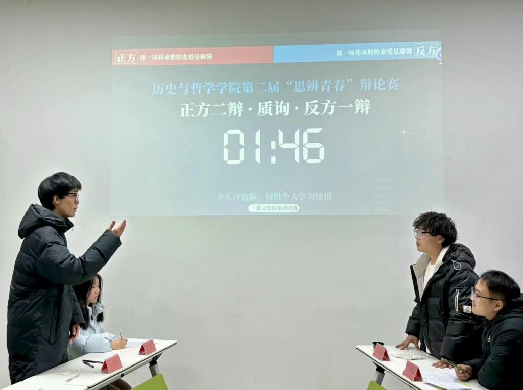 在院楼党团活动室成功举办了“思辩青春”辩论赛决赛。此次辩论赛旨在提升学生的逻辑思辨与语言表达能力,辩题聚焦“谈一场花束般的恋爱是圆满还是遗憾”。史哲院、水建院辩论队的部分成员受邀担任此次决赛的评委。