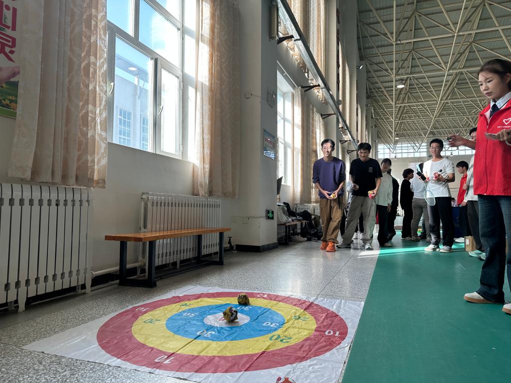 本次活动旨在通过轻松有趣的集体项目,打破严肃的课堂界限,让师生在活动中增进了解、加深情谊。活动有多个精心设计的兼具趣味性与协作性的游戏环节,包括“沙包击环”、“珠行万里”和“一圈到底”。在“沙包击环”中,师生们全神贯注,精准投掷,每一次命中都引来阵阵喝彩,积分制的设定更是激发大家的参与热情。呼啦圈在牵手而成的“人链”中灵活穿梭,考验的不仅是技巧,更是师生们彼此间的信任与支持。